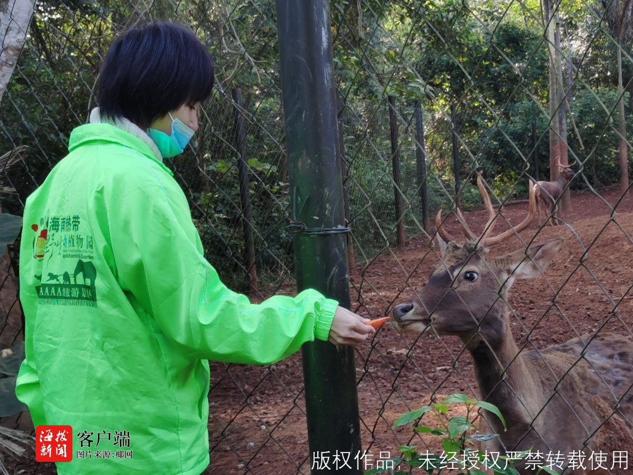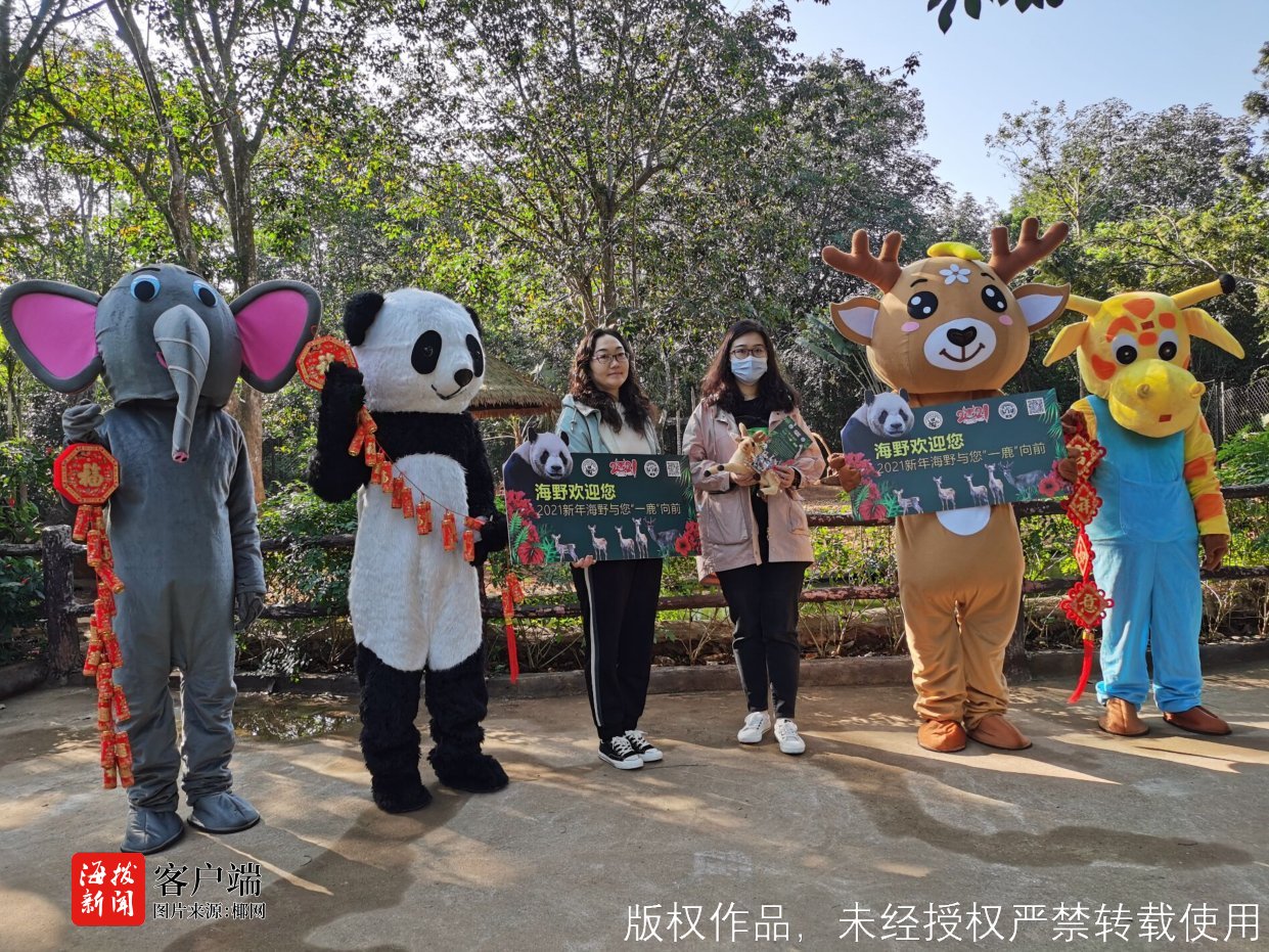 商报全媒体讯(椰网/海拔手机端记者 许文玉 王辉 摄影报道 )1月1日,为营造全园欢乐气氛,由海野坡鹿玩偶带领海南野生动物玩偶们在坡鹿展区现场与游客开展互动,同时结合海南特有物种海南坡鹿和“一鹿有你”的元旦主题活动,让市民走进全新的2021“牛年”。